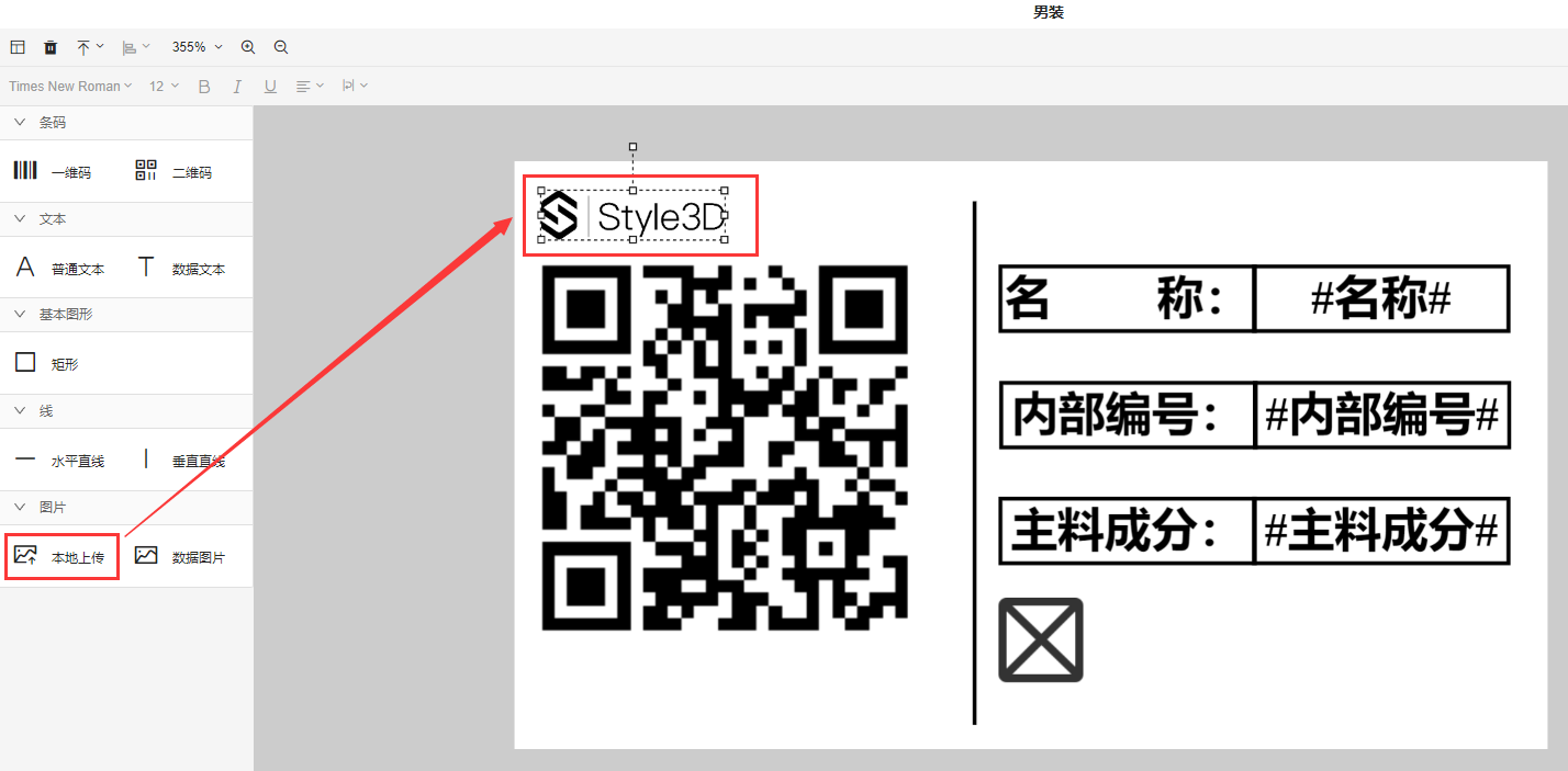 本地上传:主要是用于例如logo,或者一些装饰性的图片,放在标签上不需要变化的