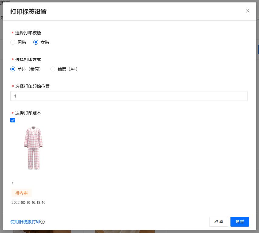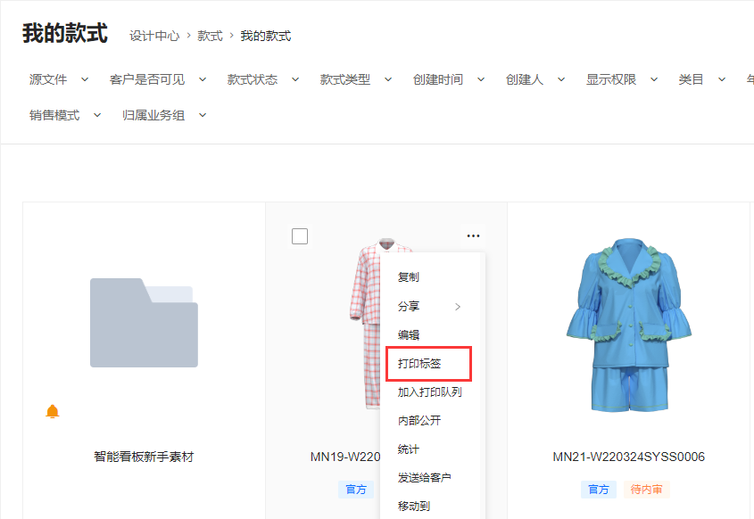 类型指这个标签模板是用于什么类型的资源的,是用于款式还是面料或者其他等