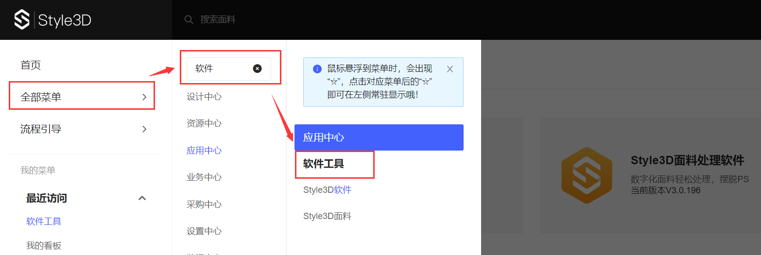 点“全部菜单”,搜索“软件”,点击进入软件工具