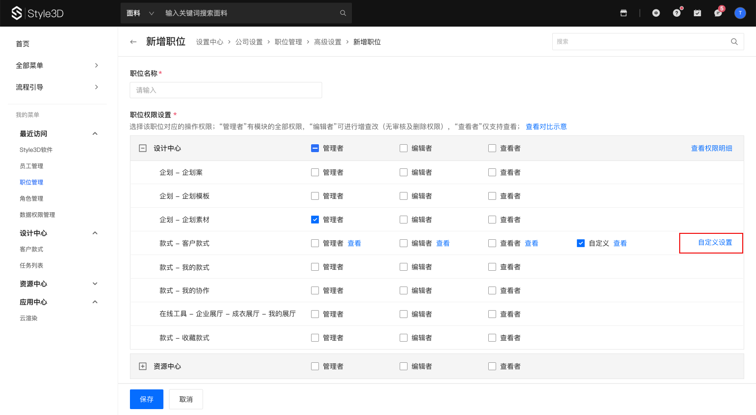 2、如平台提供的权限组合(管理者、编辑者、查看者)不能满足需要,也可进行权限自定义设置;