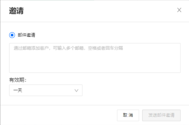 2.点击新增供应商-邮箱邀请,输入供应商邮箱