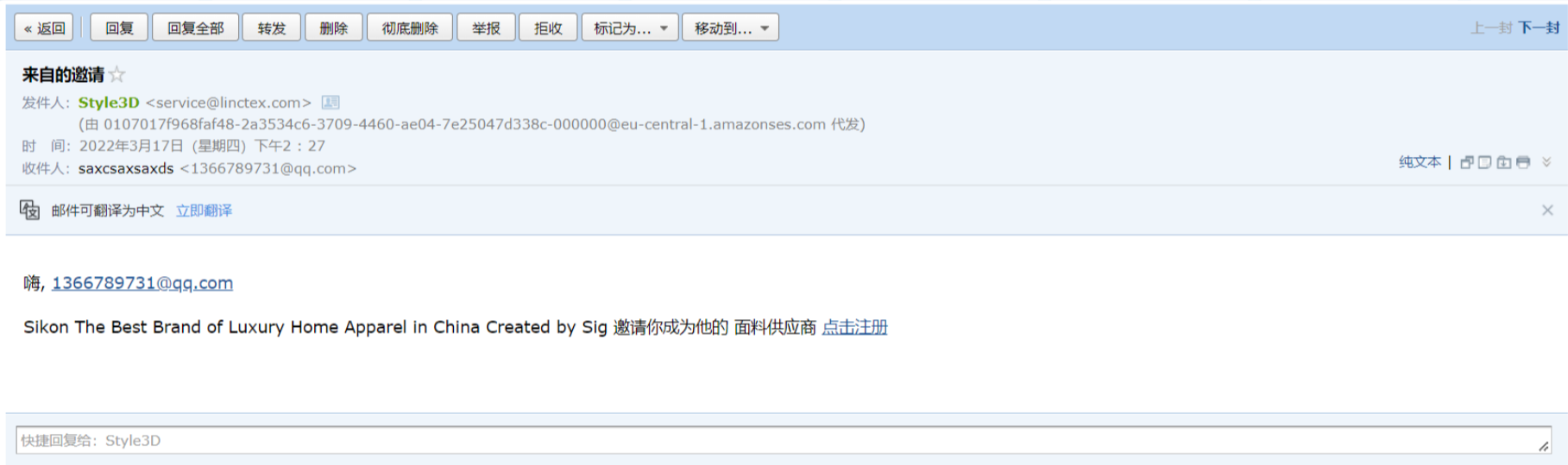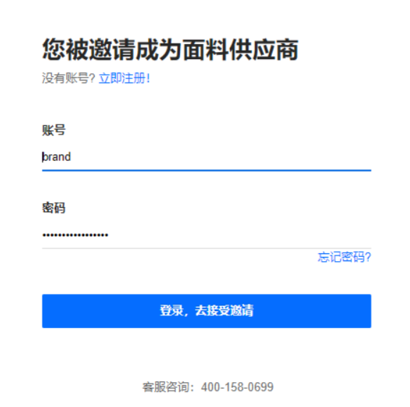3.面料供应商收到邮件后,点开链接,登录账号便可以接受邀请