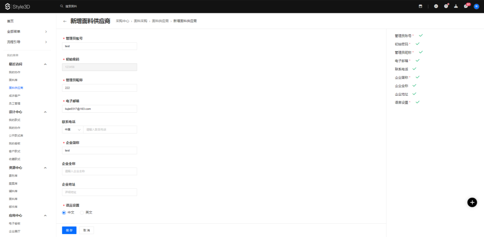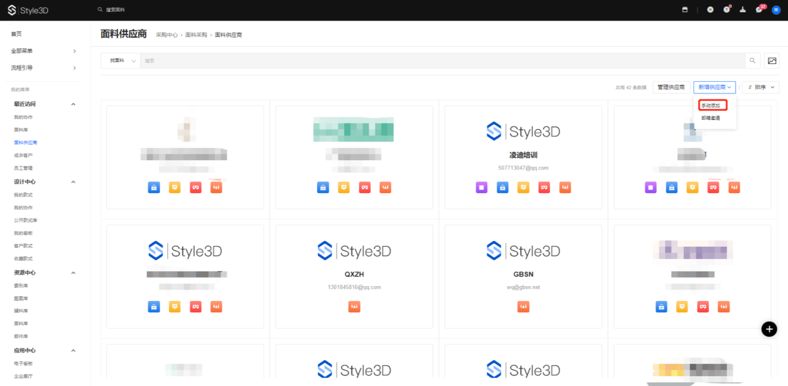 1.在设置中心-采购中心-面料供应商,点击新增供应商-手动添加