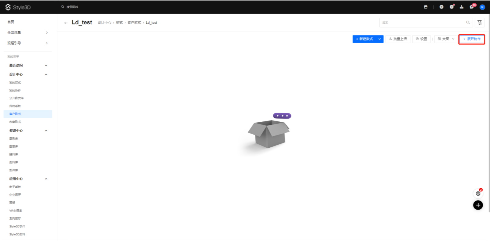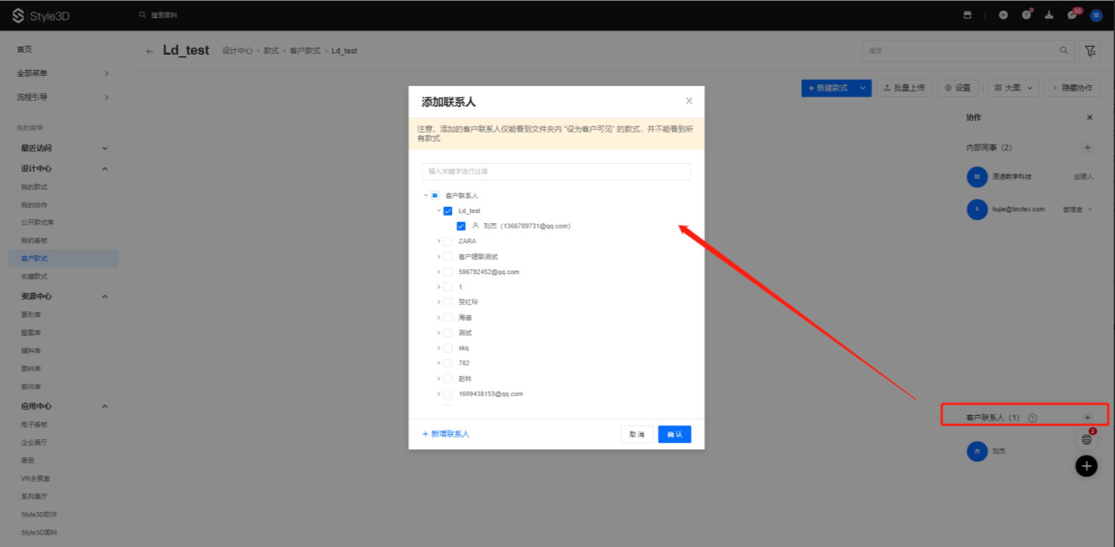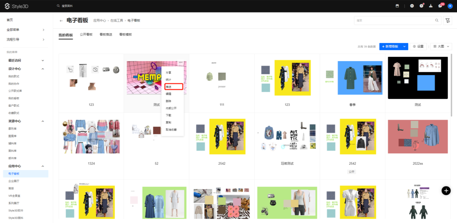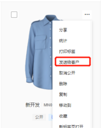 3.将设计中心中我的款式/我的协作/公开款式库里的通过内审的款式发送给客户