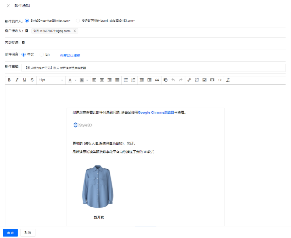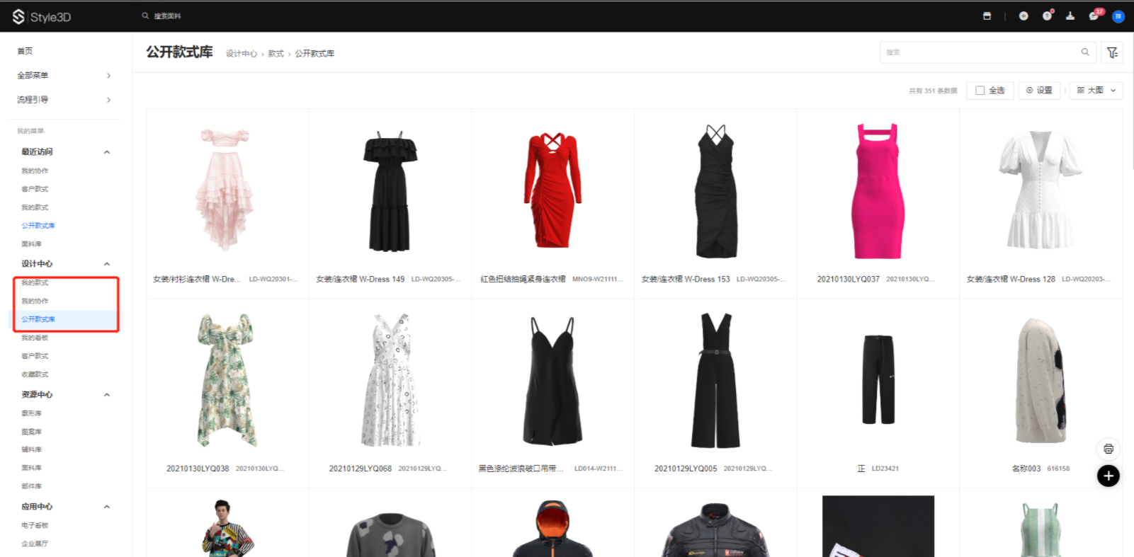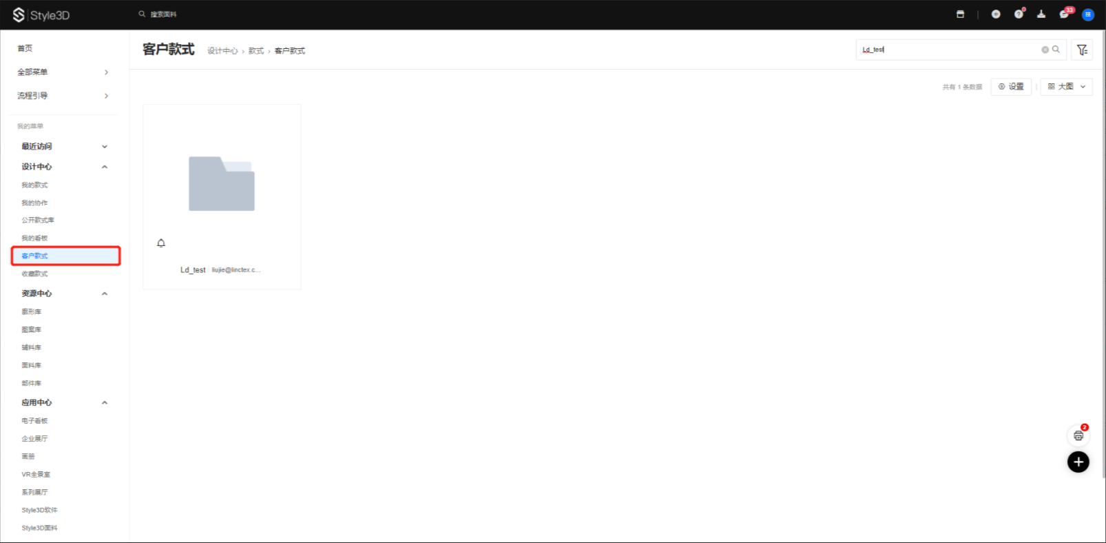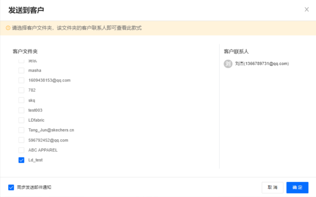 3.将设计中心中我的款式/我的协作/公开款式库里的通过内审的款式发送给客户