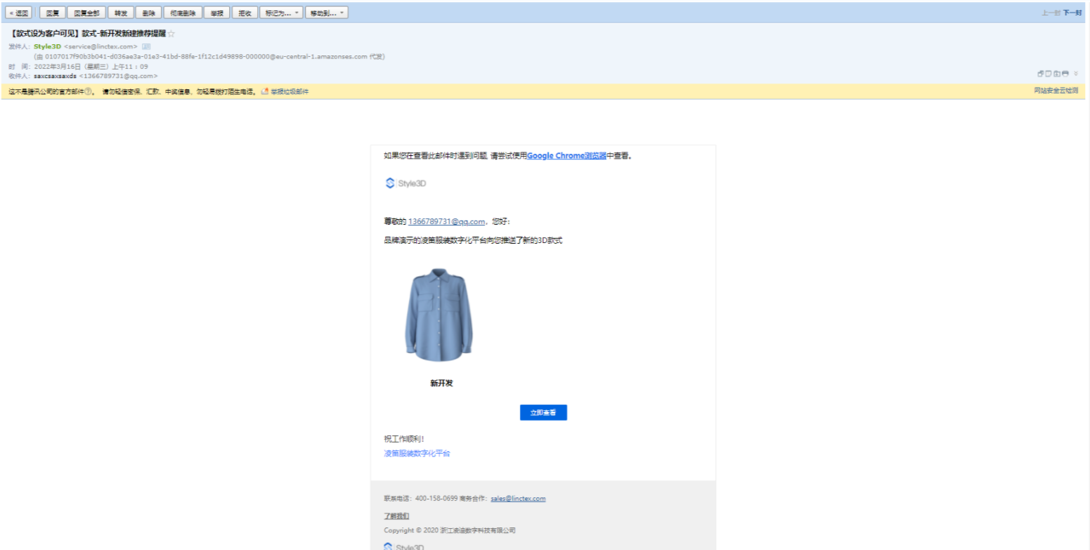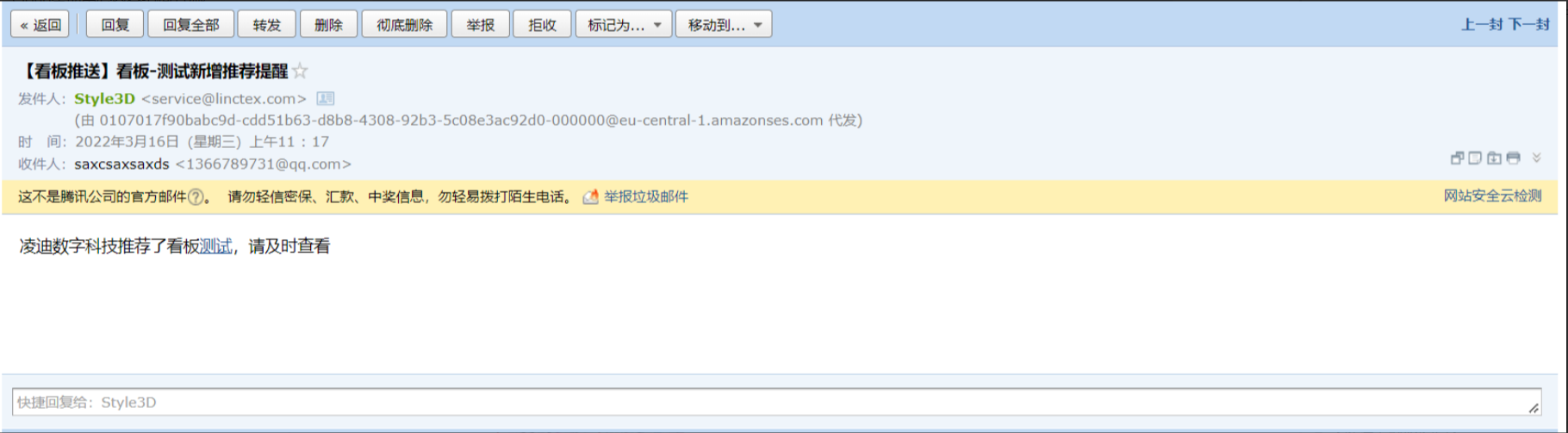 4.同时客户的邮箱会收到一封邮件提示有看板推送信息