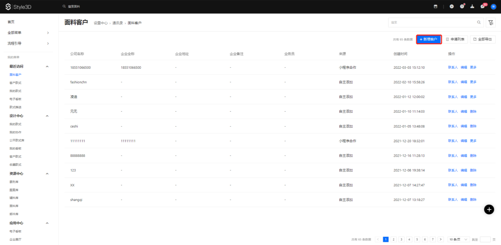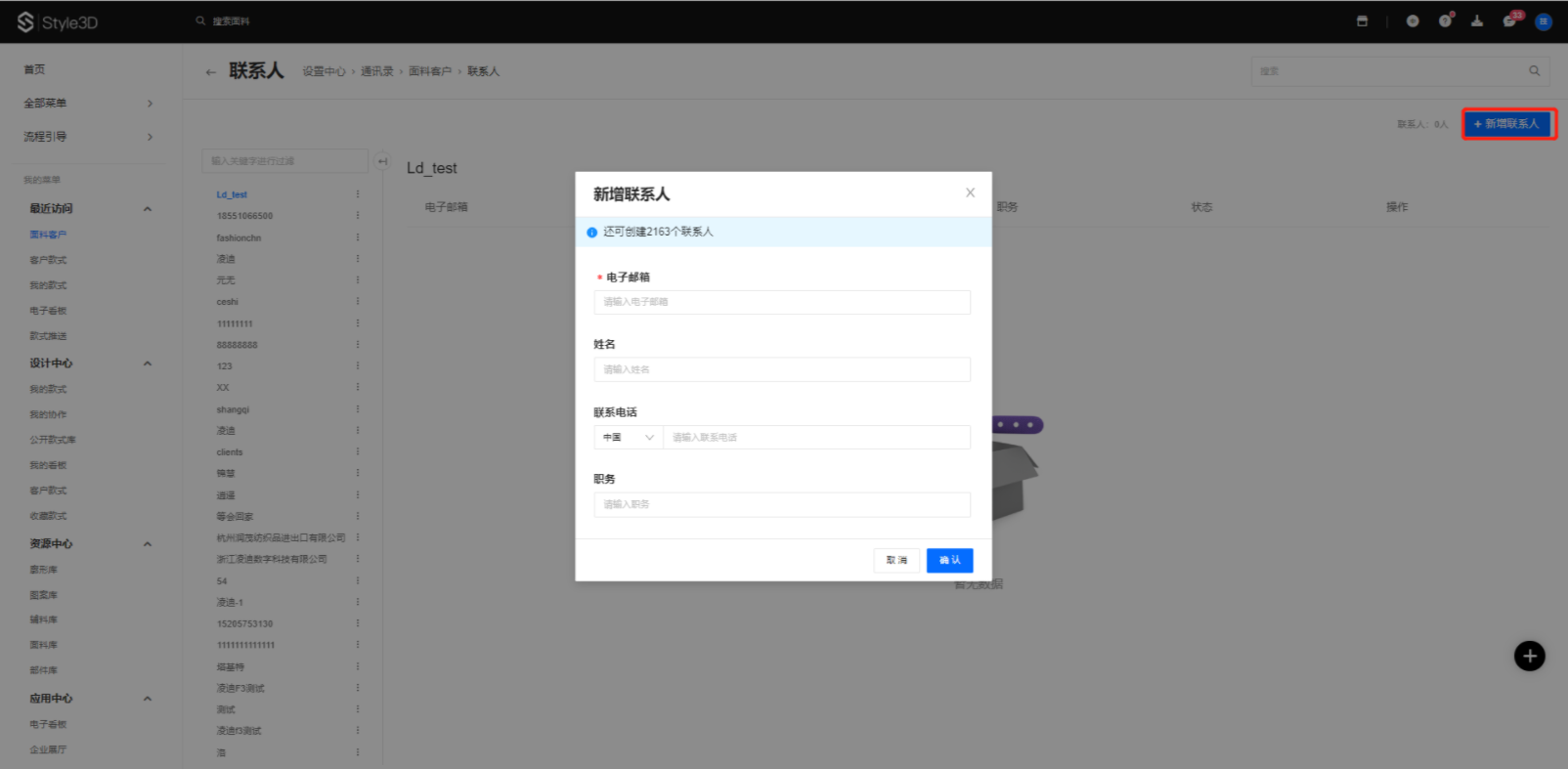 · 新增面料客户联系人