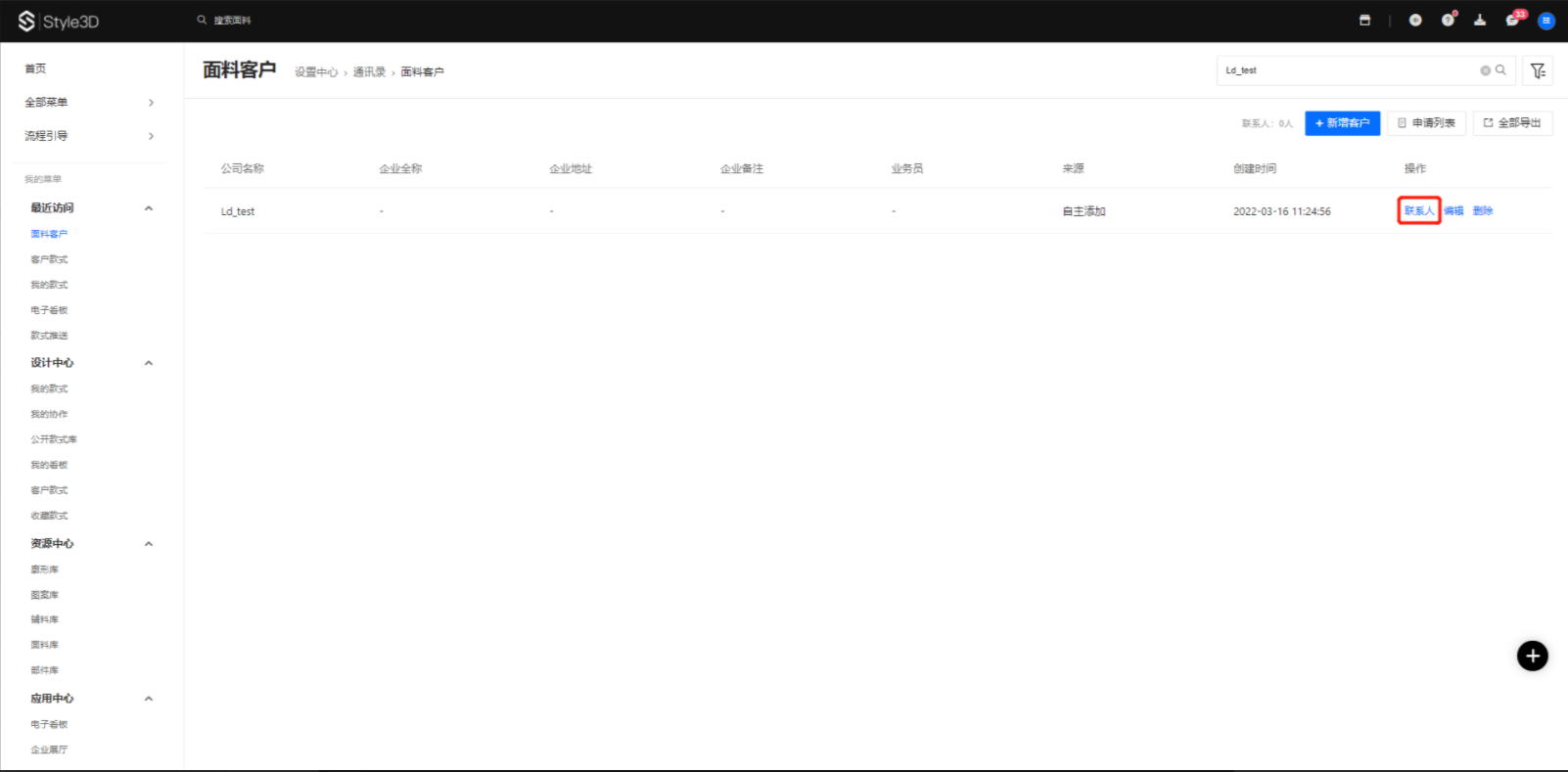 1.点击面料客户中的联系人
