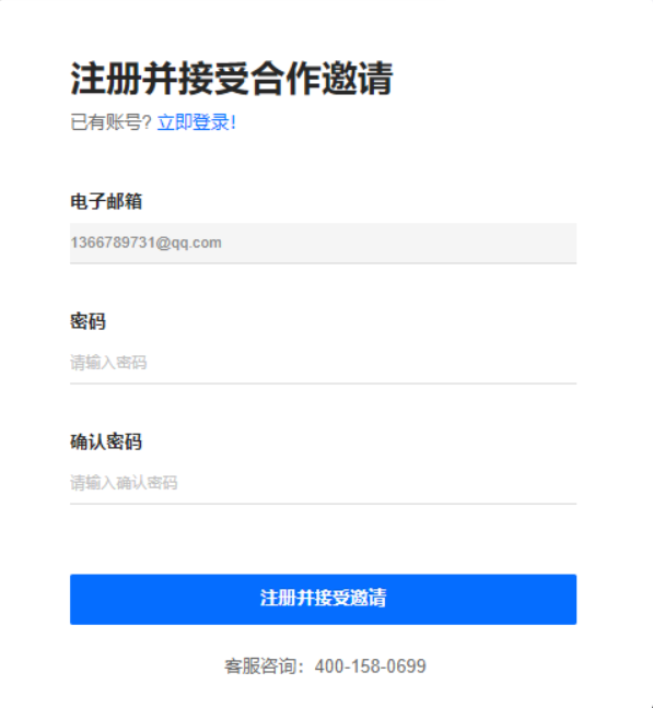 3.弹出邮箱邀请注册界面