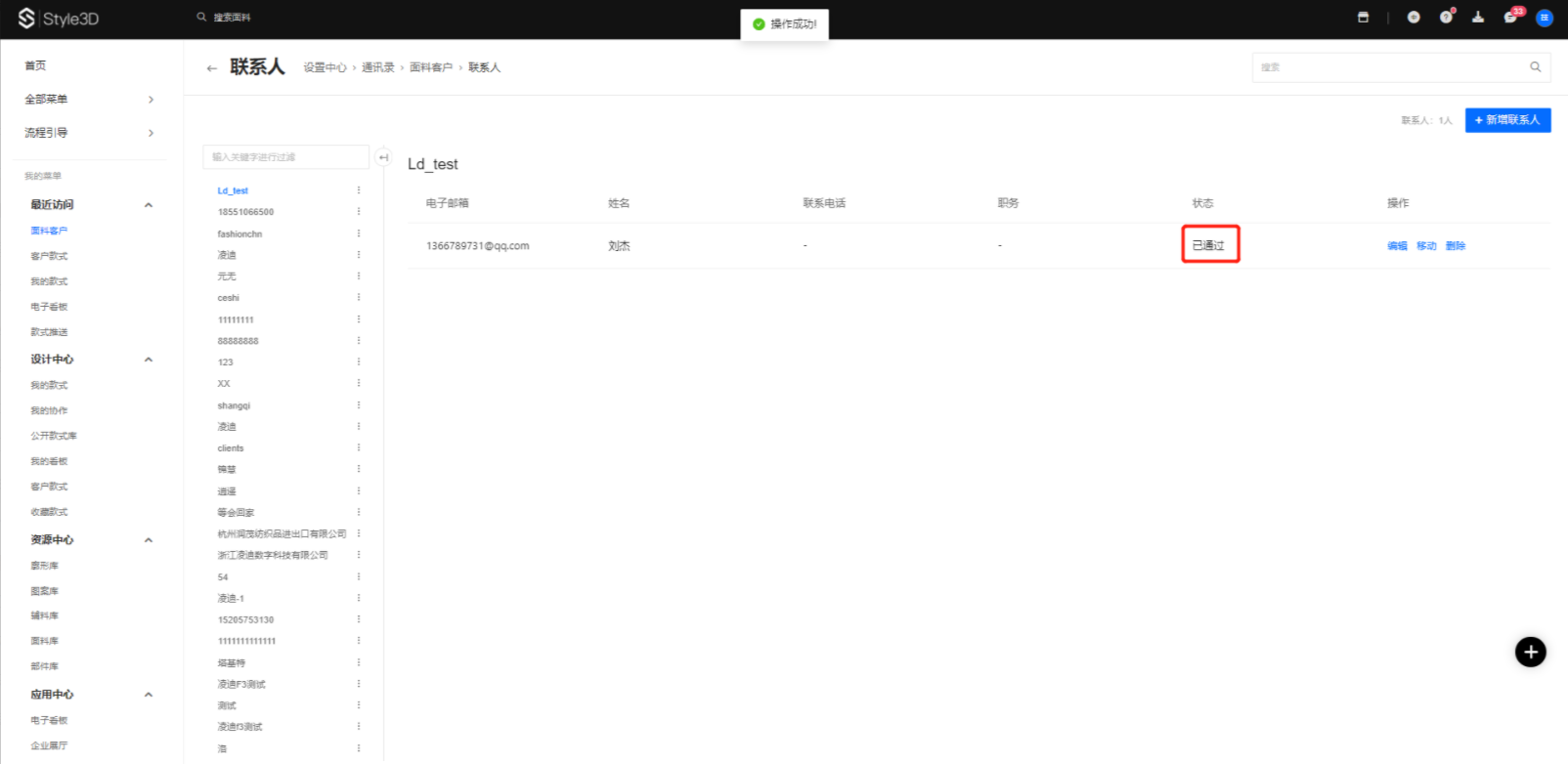5.客户联系人新增成功,状态显示为已通过