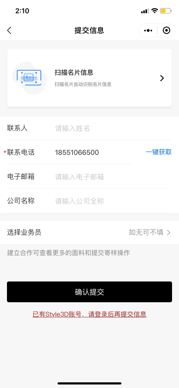 3.填写面料客户信息,如有Style3D的账号,先登录再绑定
