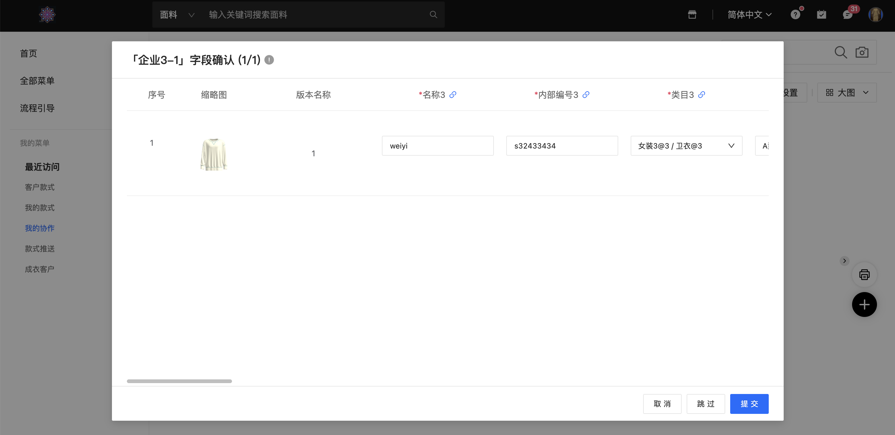条件2:已建联的条件下,供应商开放字段模板,采购商启用字段关联(门幅、门幅单位)