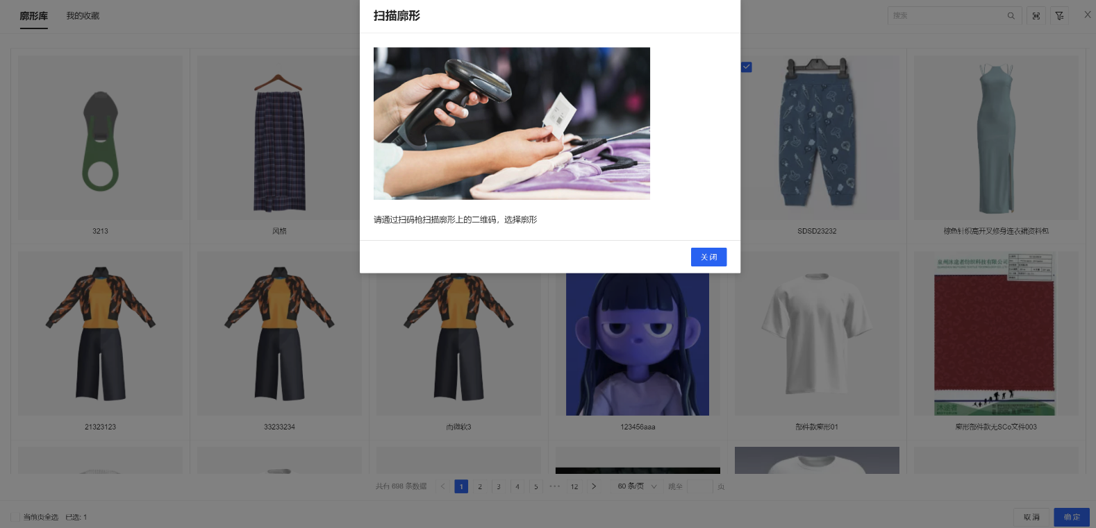 除了以上在线应用,系统中还新增了其他扫码枪位置关联廓形,包括:开放实验室编辑页、面料库的编辑页和详情页。