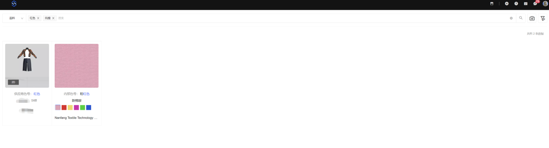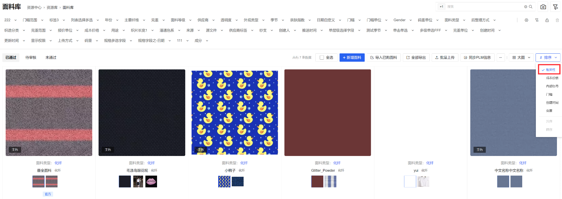 用户在面料库输入关键词搜索后,新增了“相关度”进行排序。目前仅支持面料库,后续会在更多资源库里支持。