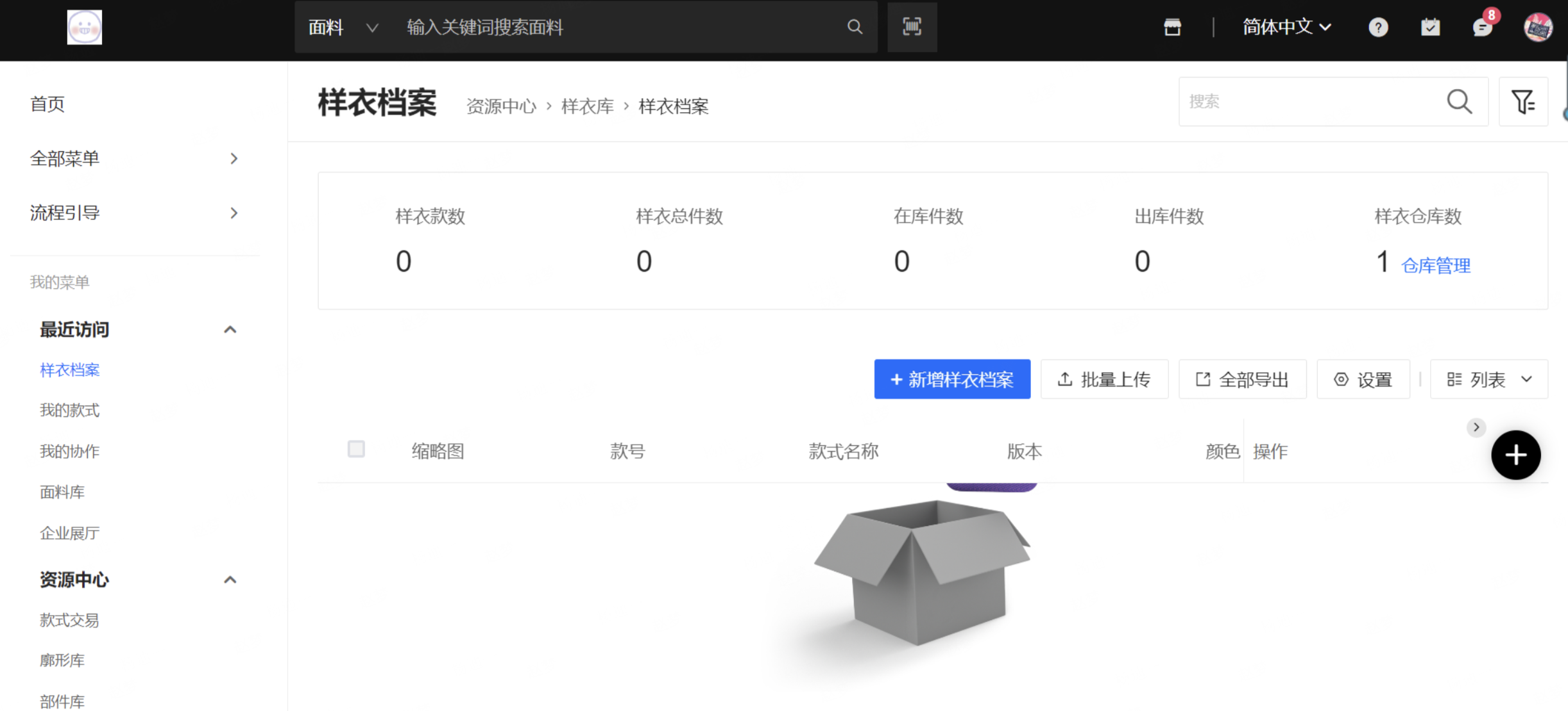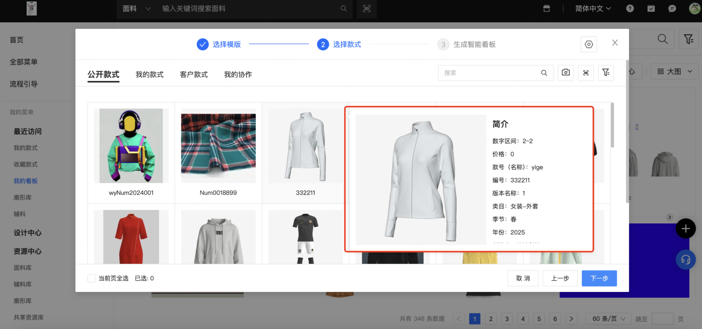 公开款式、我的款式、我的协作、客户款式、廓形、成衣供应商推款