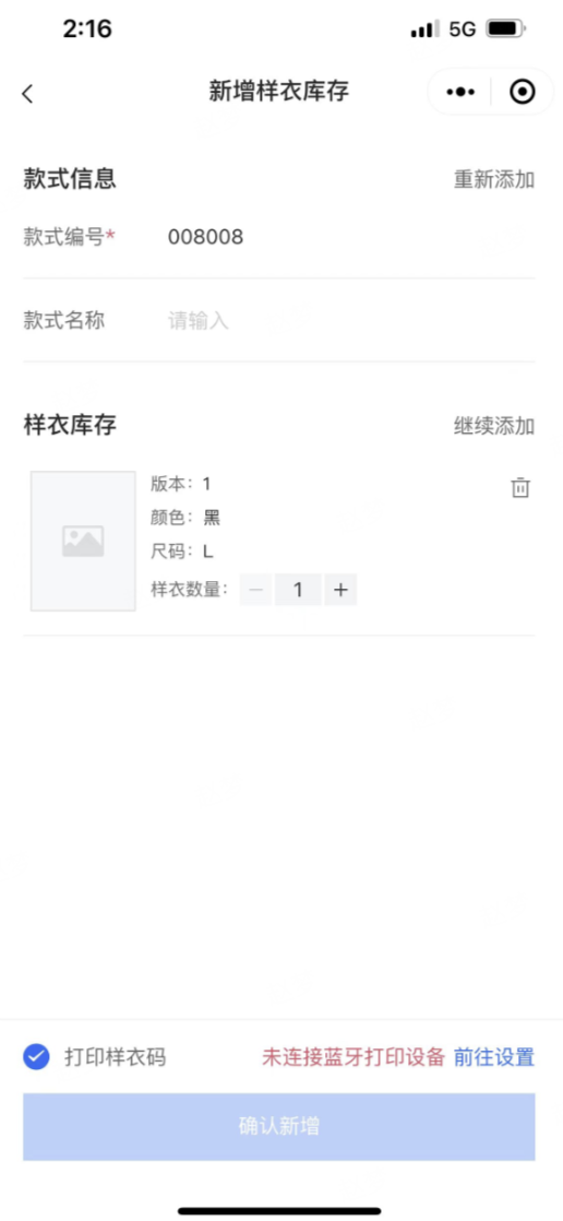 3.【样衣管理】炫款新增样衣库存时,记录上一次打印标签操作