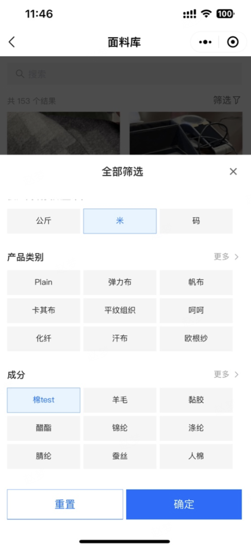 若PC端面料库筛选设置里将某个字段设置为分组字段,之前在小程序面料库筛选时是找不到分组字段的,优化后移动端可以包括分组在内的所有字段