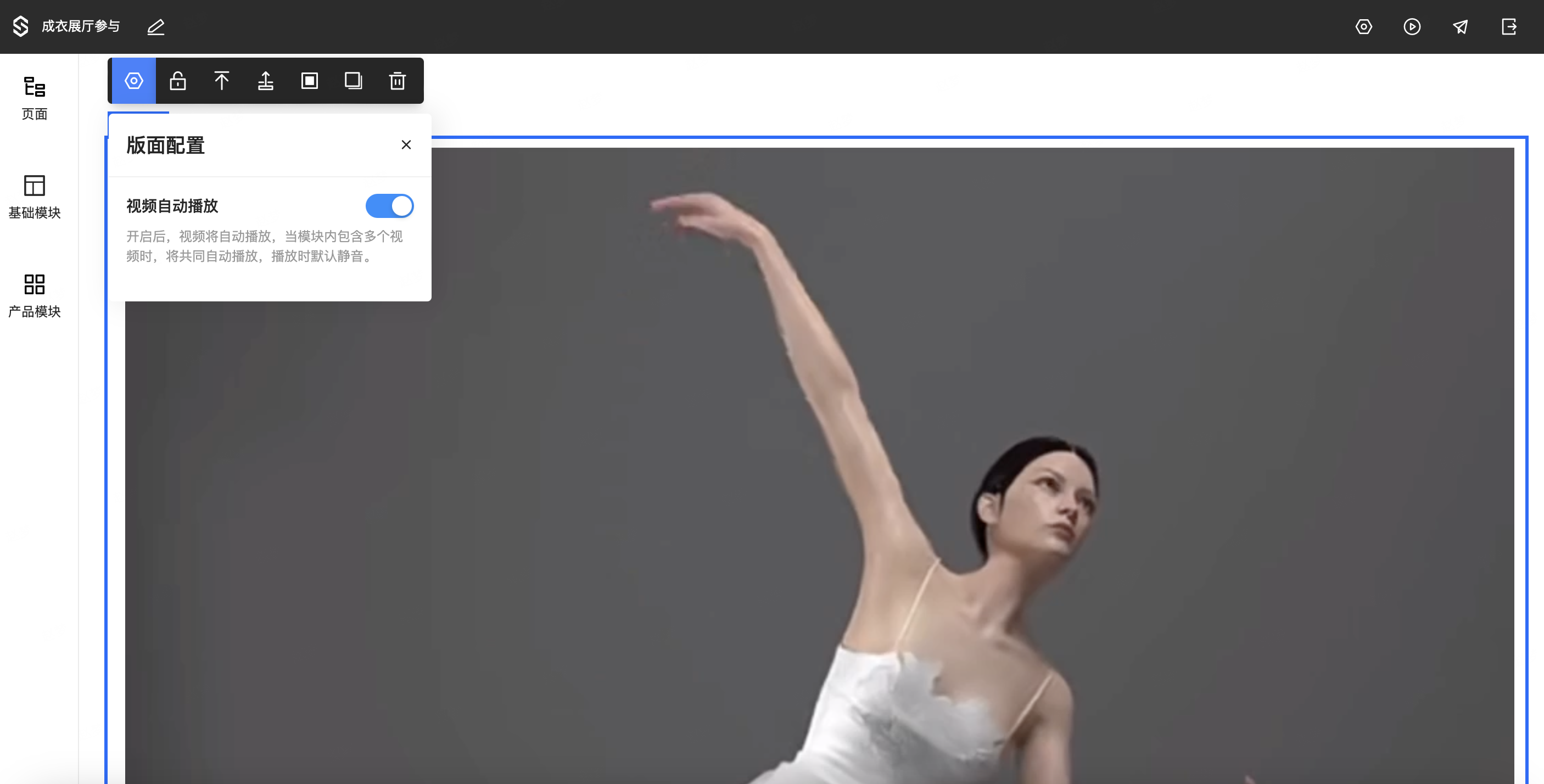 开启自动播放,则预览时视频会自动播放;且分享给客户后,客人看到详情页时视频也会自动播放