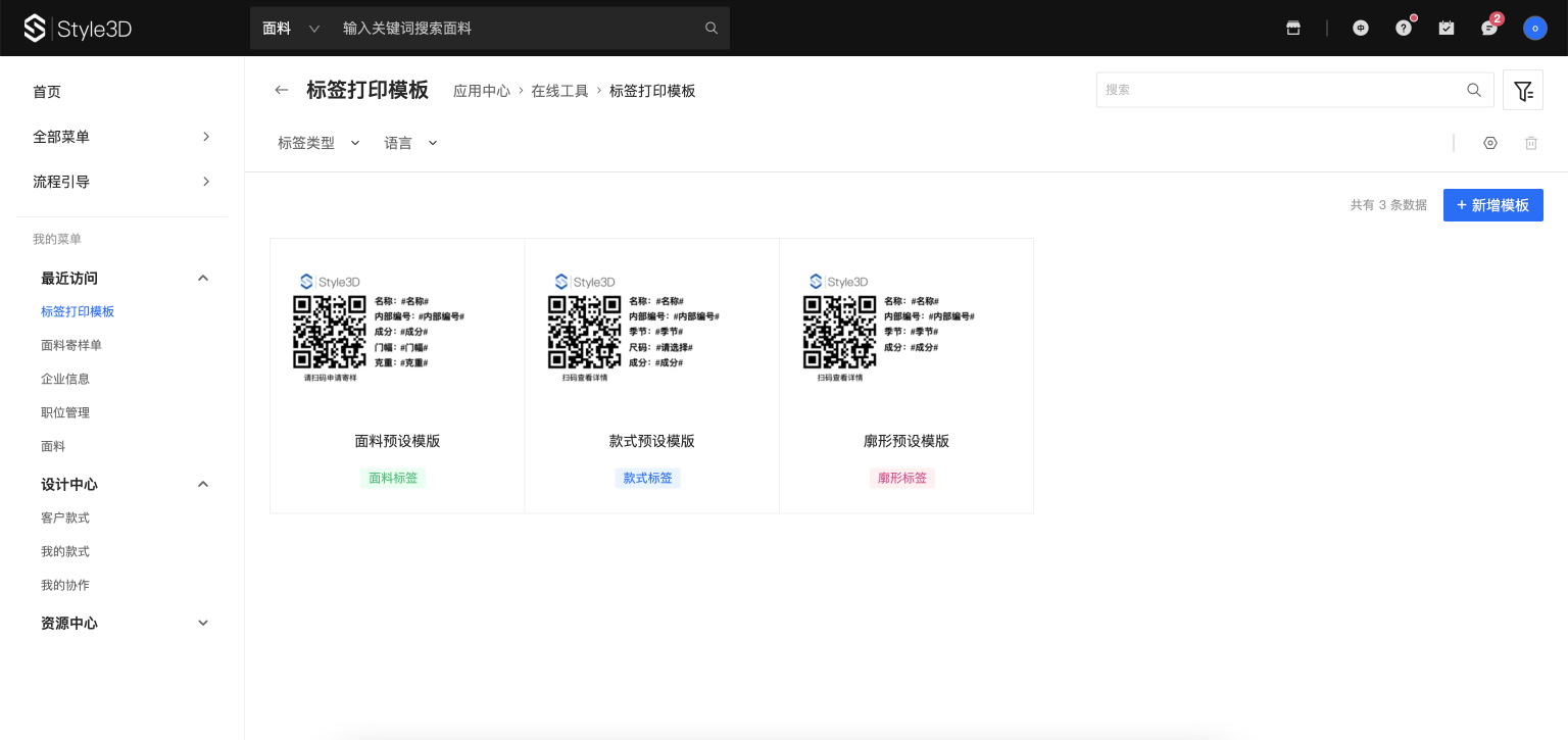优化:新增初始化标签打印模板预设&标签打印模板页面UI升级