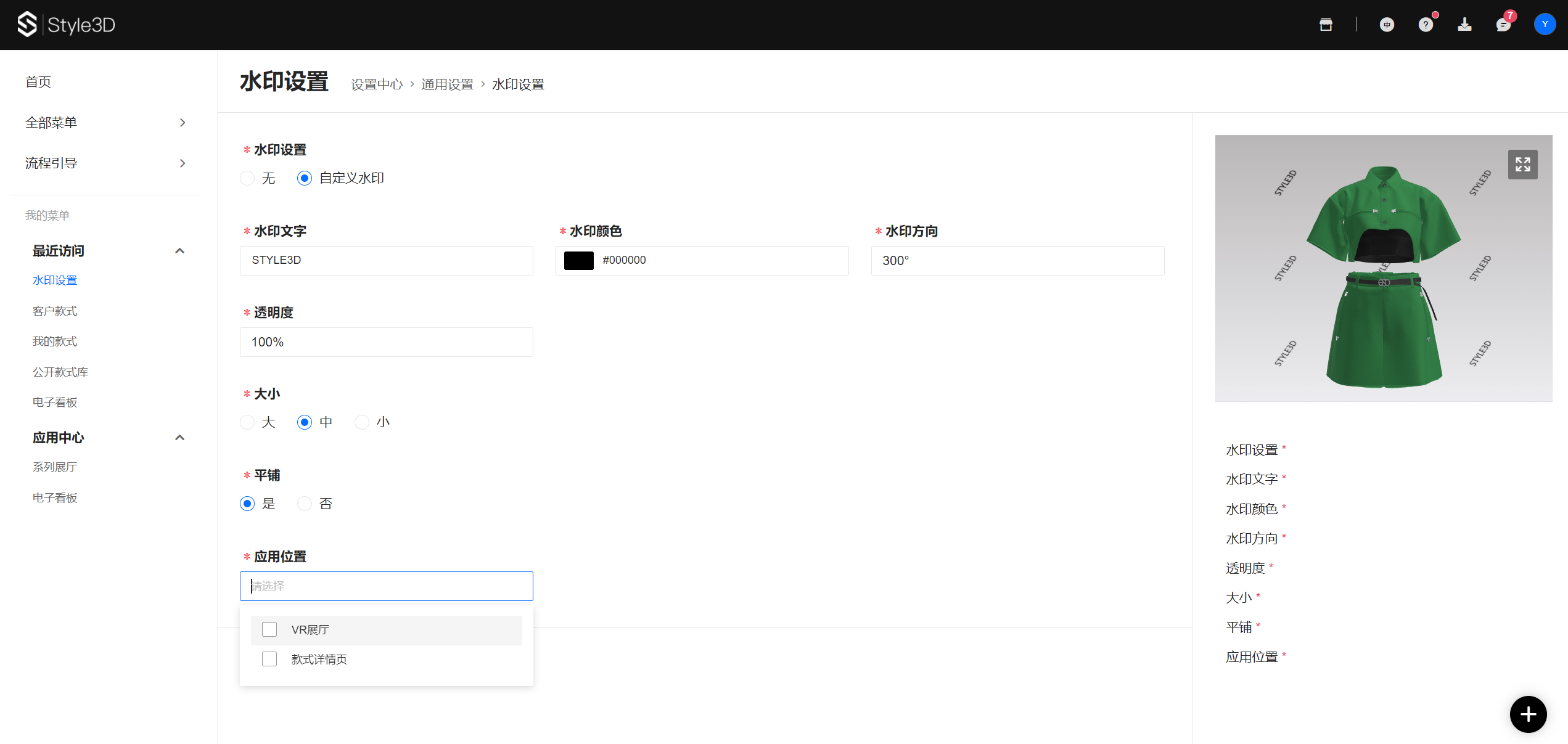 · 支持对VR展厅和款式详情页设置水印