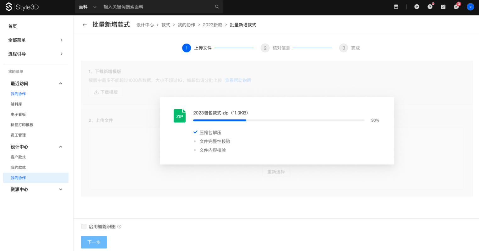 选择要上传的压缩包并点击“下一步”,将会进行如下数据校验;