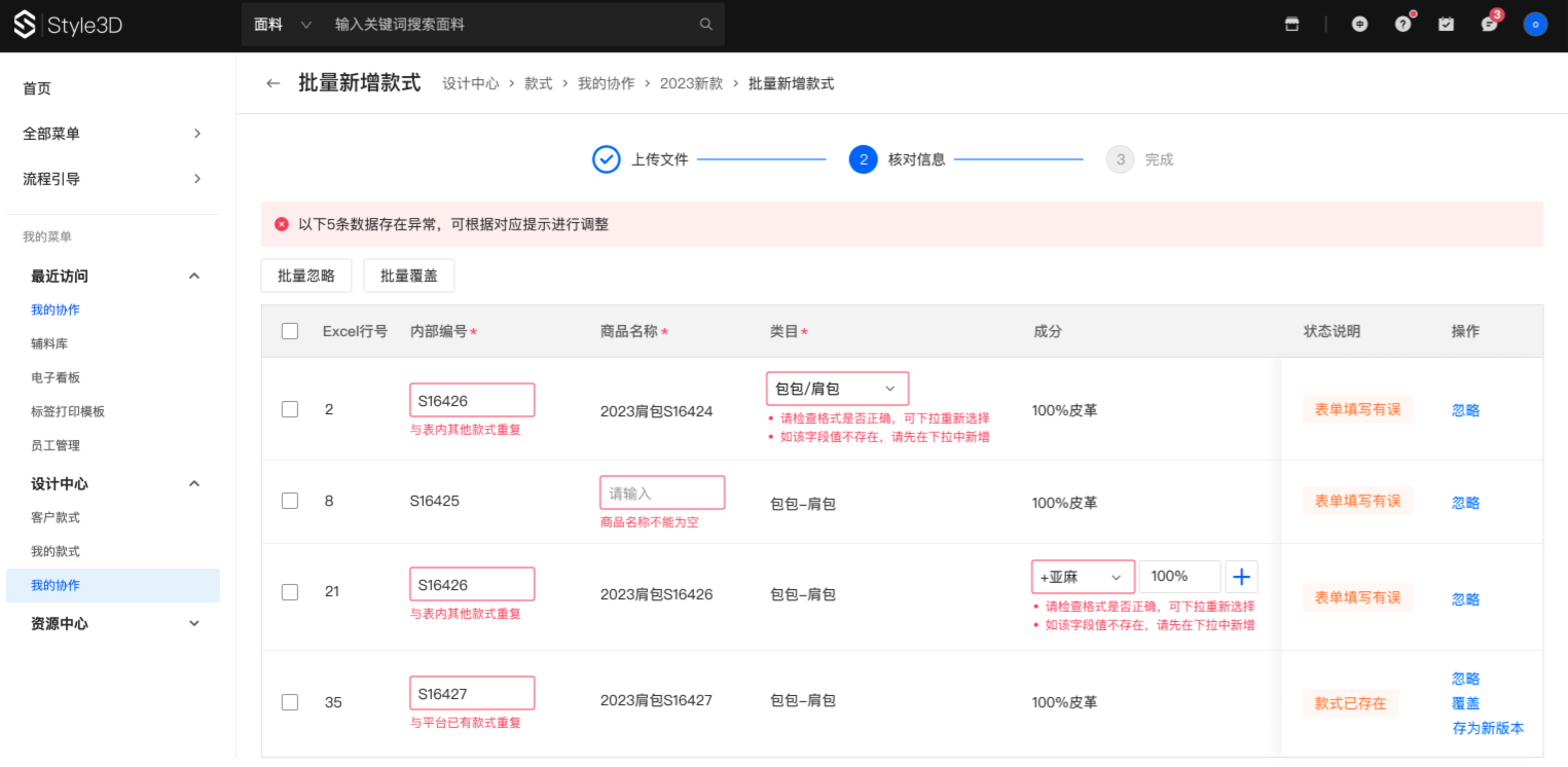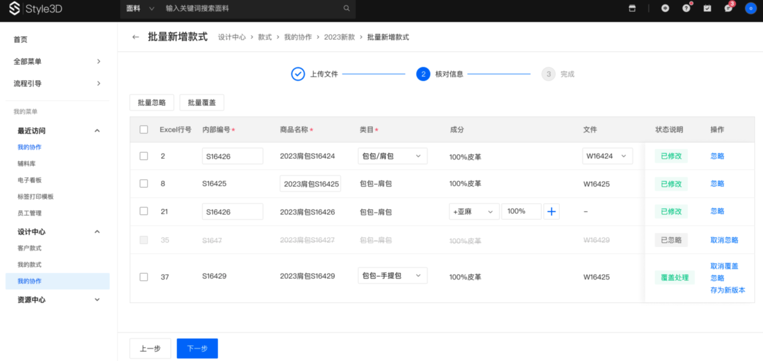 异常数据修正后效果如下,点击“下一步”即可进行数据上传;