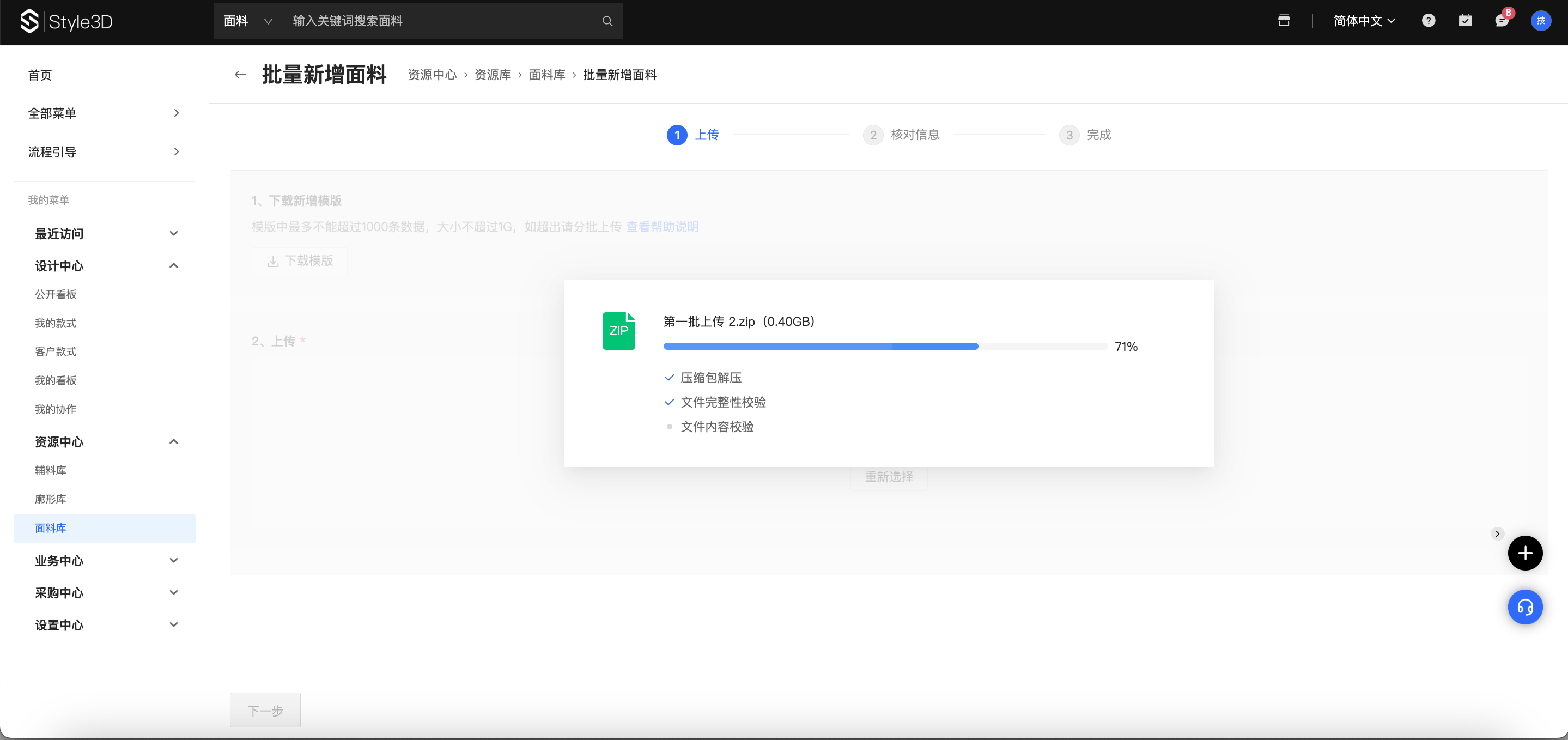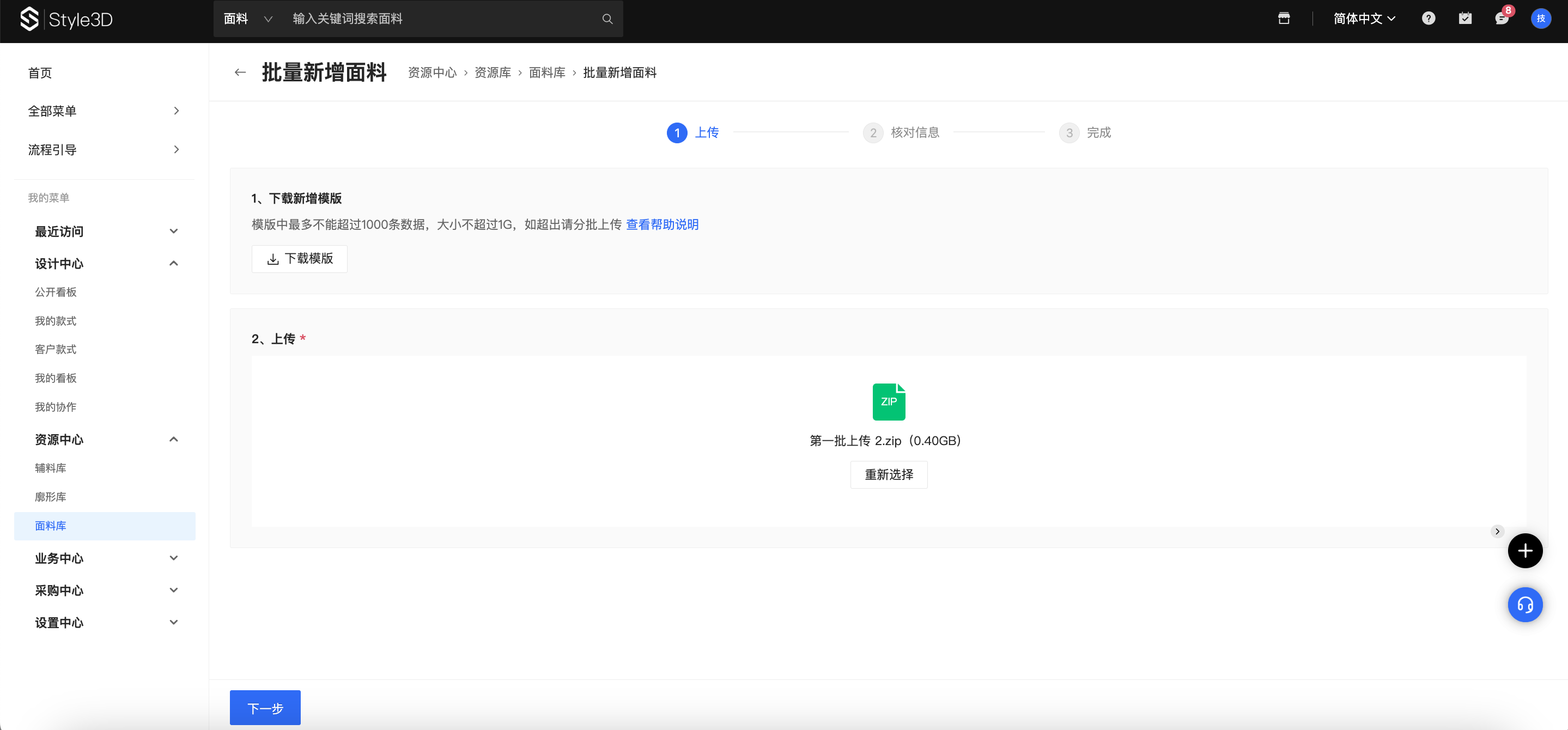 选择要上传的压缩包并点击“下一步”,将会进行如下数据校验;