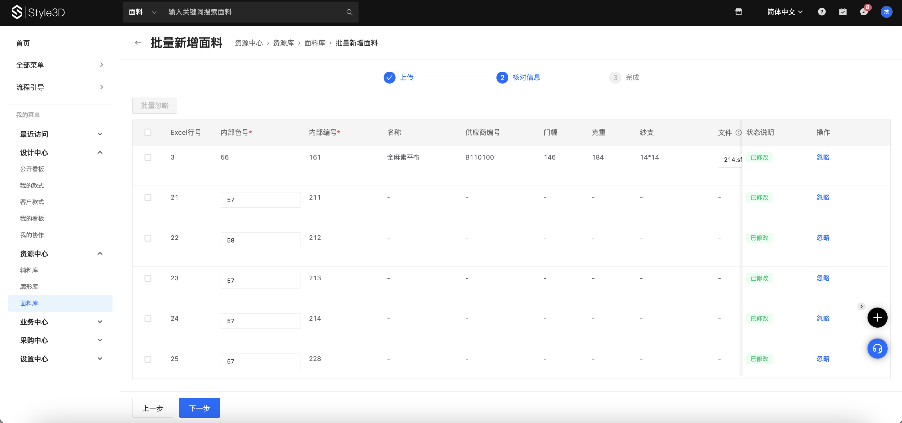 异常数据修正后效果如下,点击“下一步”即可进行数据上传;