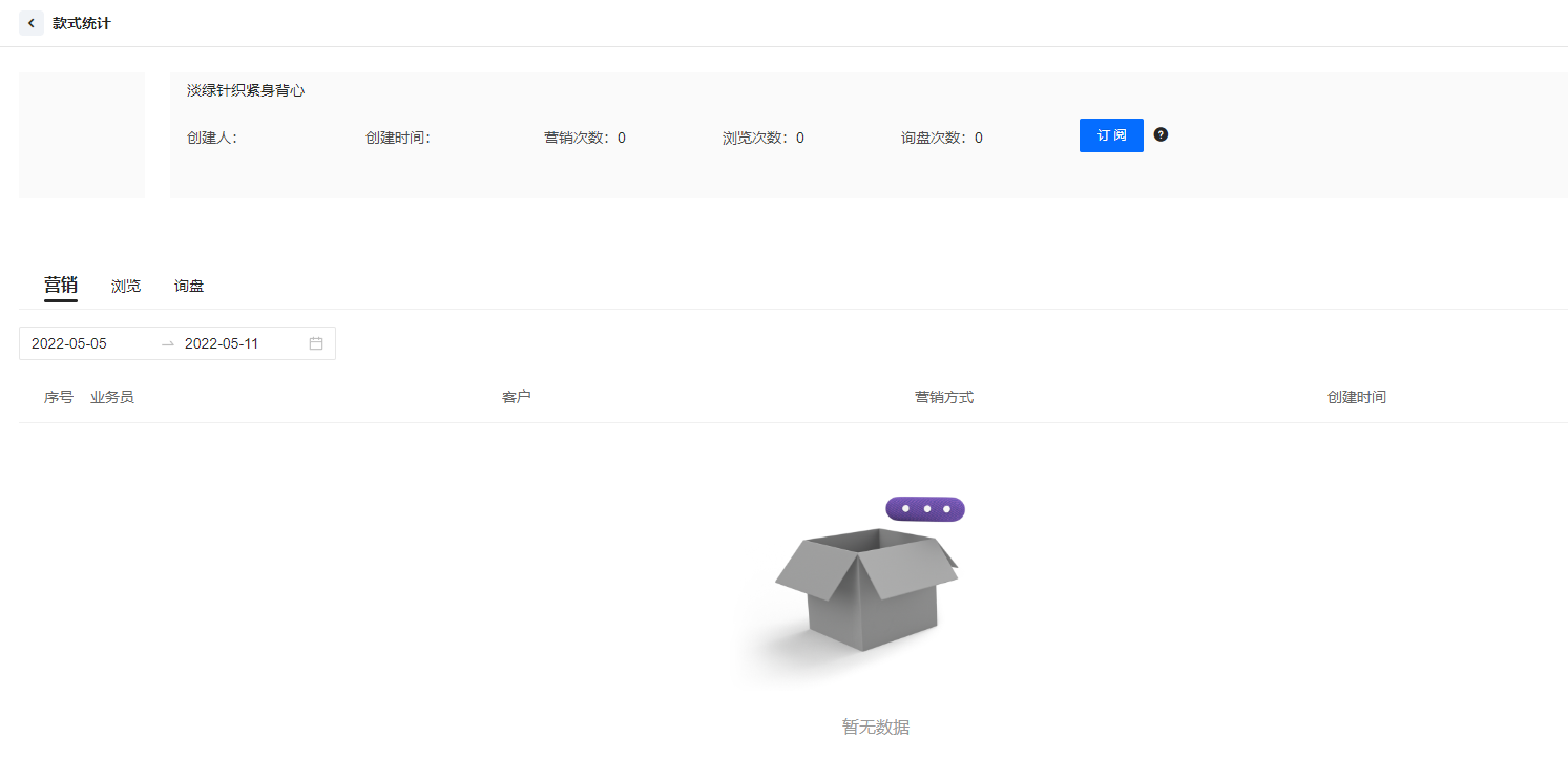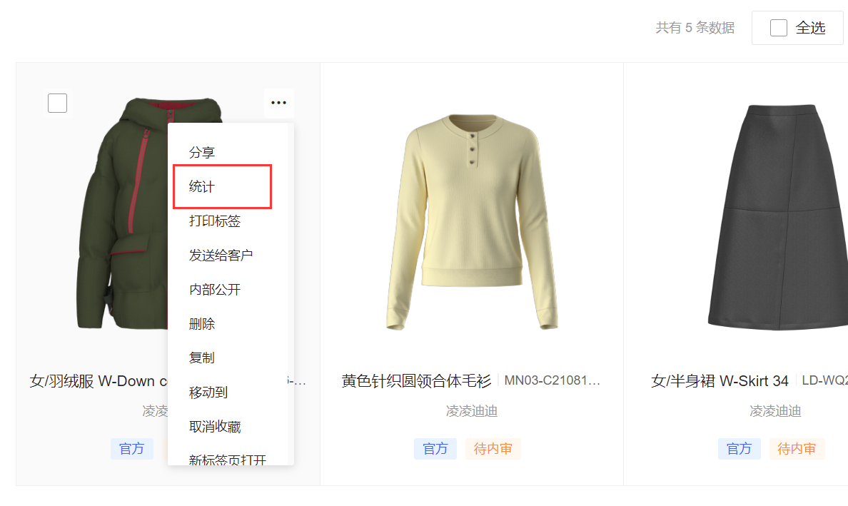 · 点击【统计】,进入款式统计页面,可以在这里查看款式的业务数据