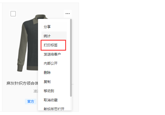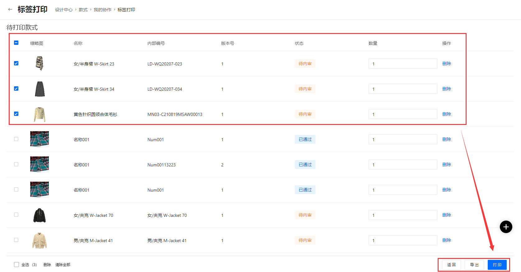 点击右下角的标签打印小图标,进入待打印款式队列,选择款式进行打印