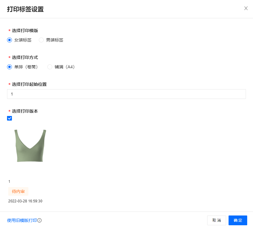 · 点击【打印标签】,进入打印标签设置弹窗,设置好标签打印的相关参数后可进行打印
