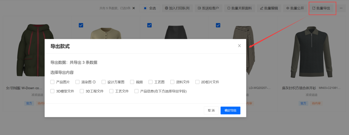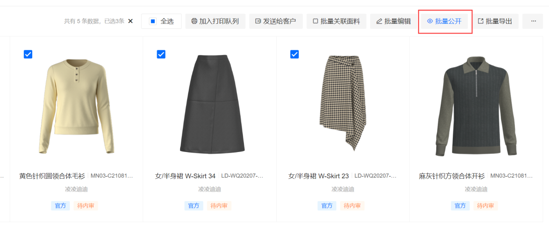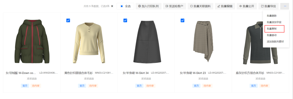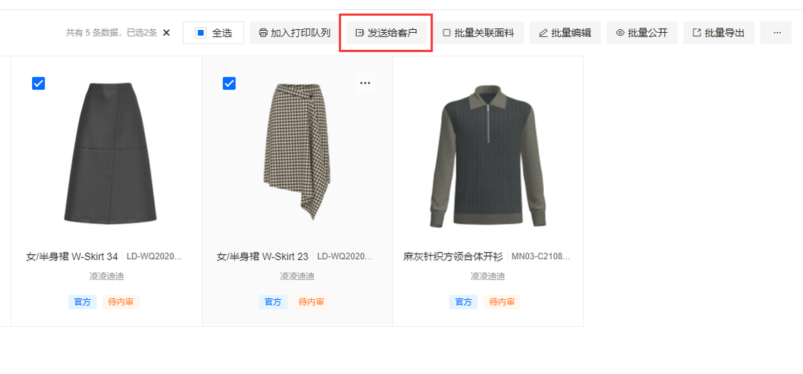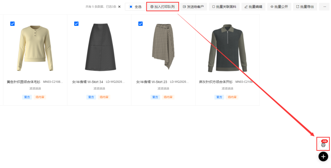 选中多款,点【加入打印队列】,将款式加入待打印款式队列