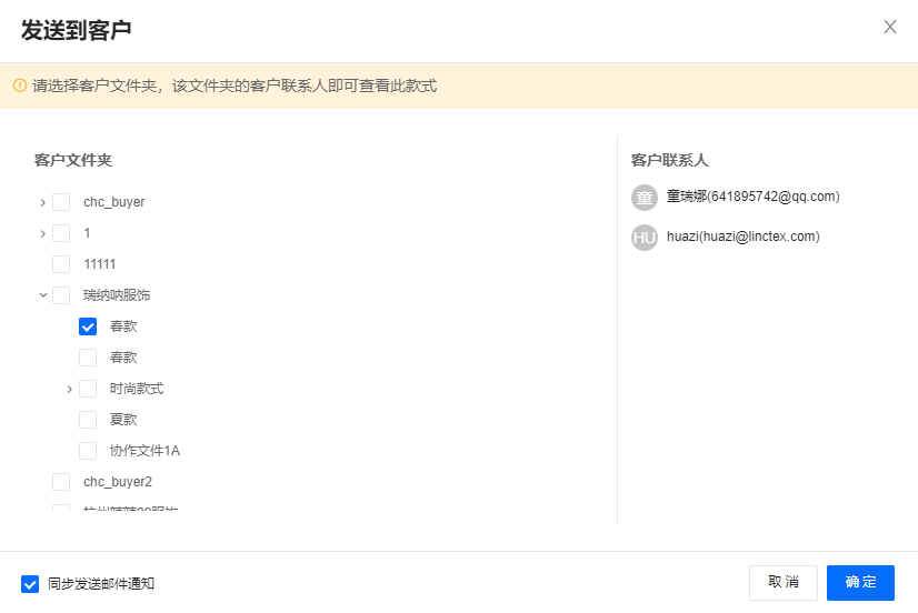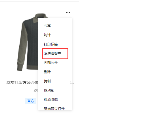 · 将款式【发送给客户】,是复制一份到客户的文件夹中去,当前菜单中还有