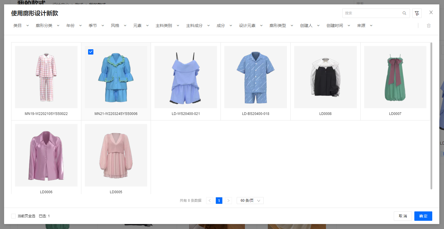 使用廓形设计新款,是一种快捷的款式创建方式,可以从公司沉淀的经典廓形中,选择1个,用廓形的相关信息生成1个新的款式,生成后,可以通过编辑对款式的信息进行修改