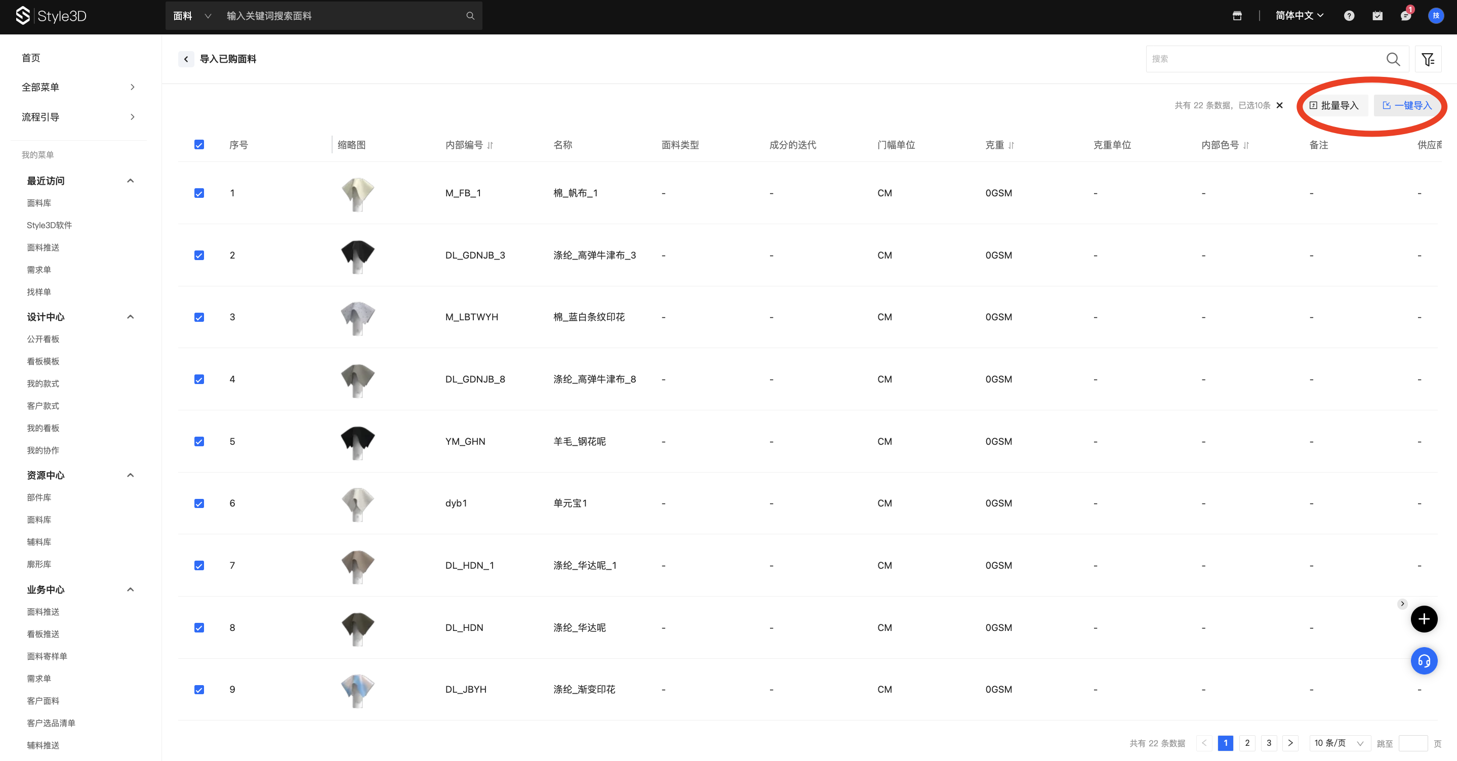 面料基本信息和面料规格信息的字段配置,详见:面料字段配置