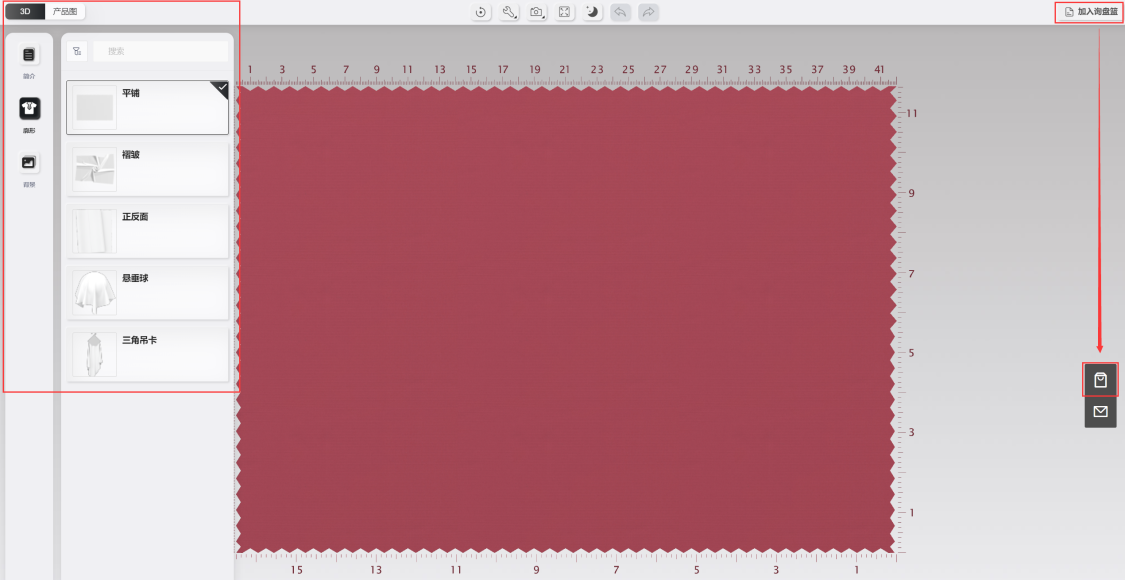 - 可在详情页中查看面料的不同形态,可更换面料展示背景等