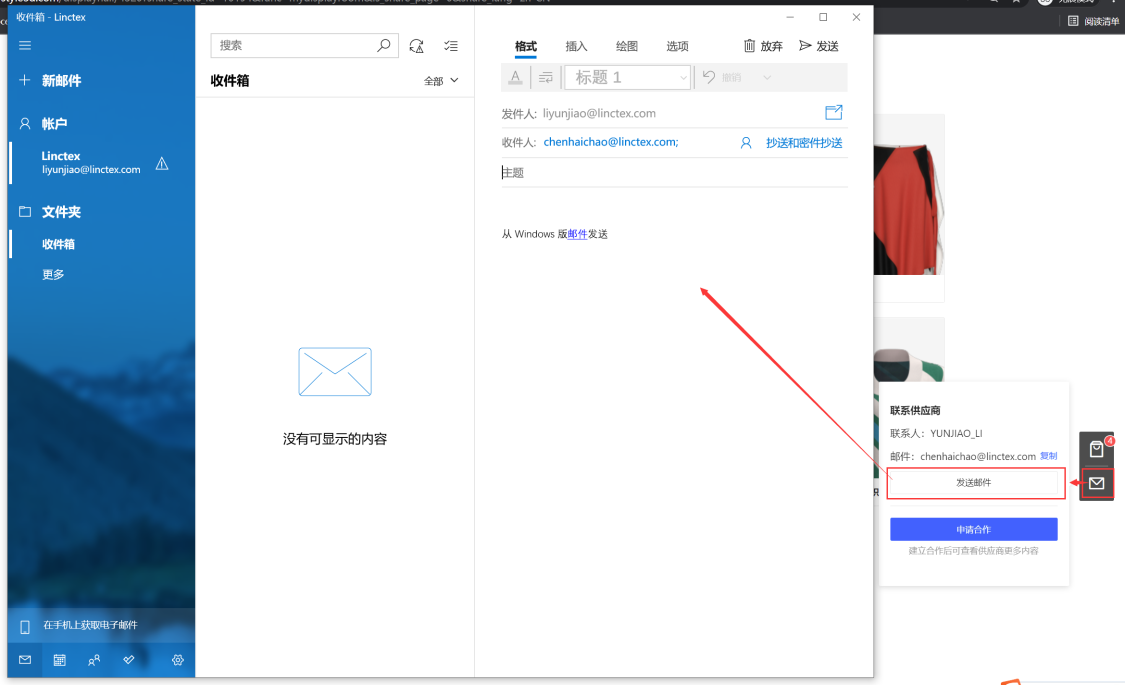 - tips:点击发送后,自己和供应商将分别收到一封邮件