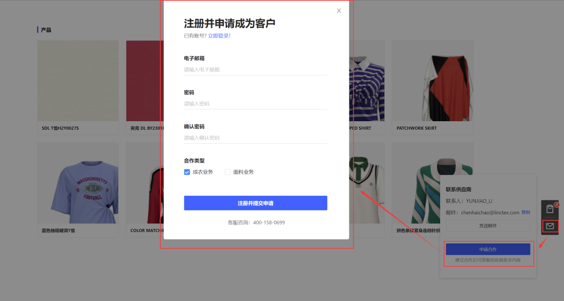 - 没有凌迪账号的用户可根据提示完成凌迪系统账号注册,同时完成了与供应商的建联,可查看更多供应商的信息,如企业展厅等