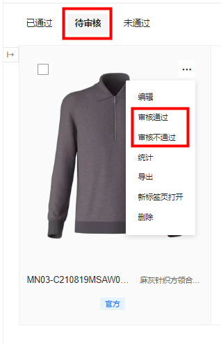 资源上传至资源库后,会进入待审核区域,需要有审核权限的账号(管理员账号+被指定开放该权限的账号)对该资源进行审核,在资源右上角选项中选择审核通过或审核不通过,选择通过后该部分资源才会显示在【已通过】中,另,如果使用有审核权限的账号上传资源会直接进入【已通过】。