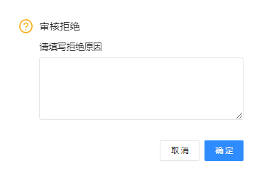 若未通过审核,则需管理员填写拒绝原因,拒绝后该资源会出现在【未通过】中