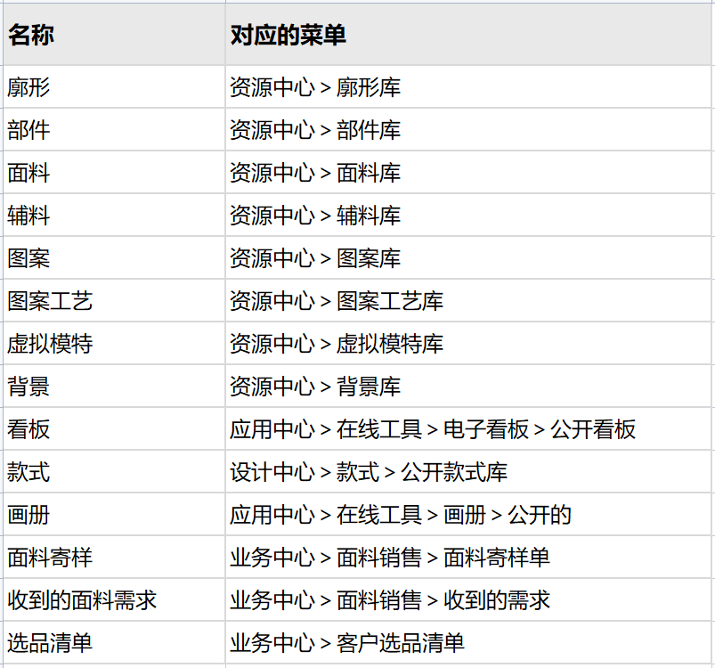 Cloud资源对应菜单