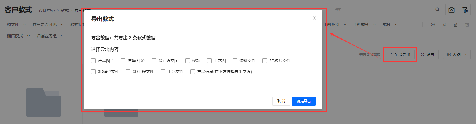 款式上传时填写或传上来的资料,可以根据需要进行导出