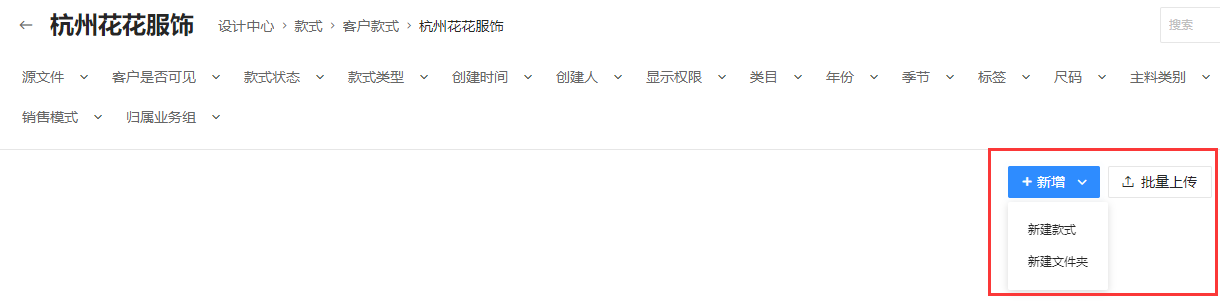 新链路:企业建联后,系统不自动生成一个新的文件夹在客户款式中,需要手动新增客户文件夹,供应商也可以在此文件夹进行推送款式给到供应商