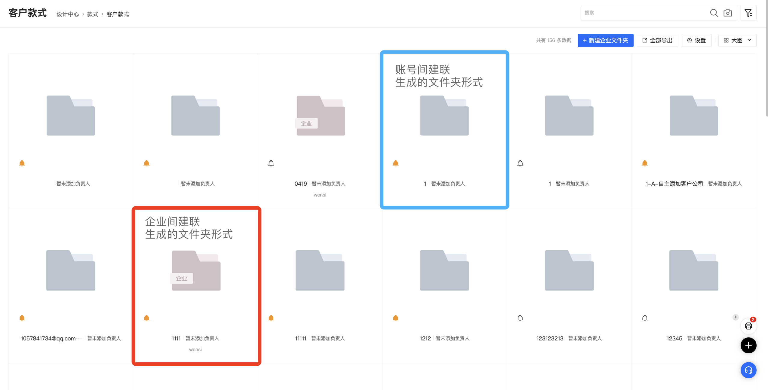 注2:可为同一个客户生成多个企业文件夹