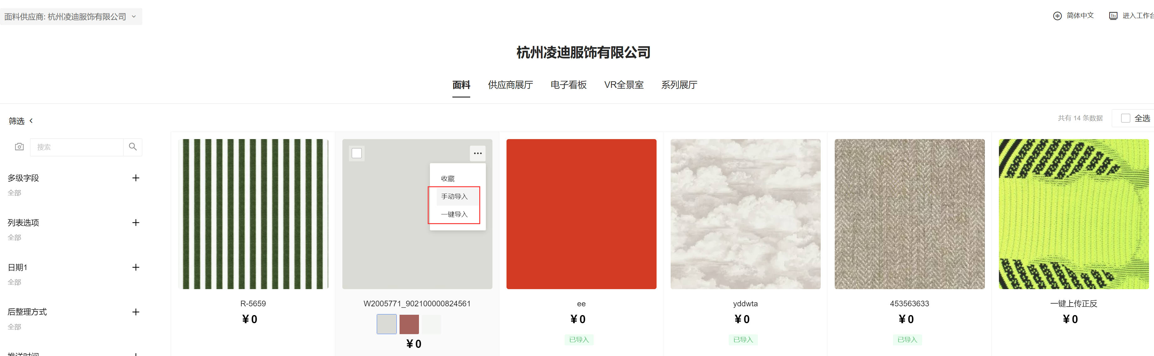 对单个辅料感兴趣的话,可以将辅料导入自己的辅料库,有两种方式,一键导入,或手动核查字段数据后导入