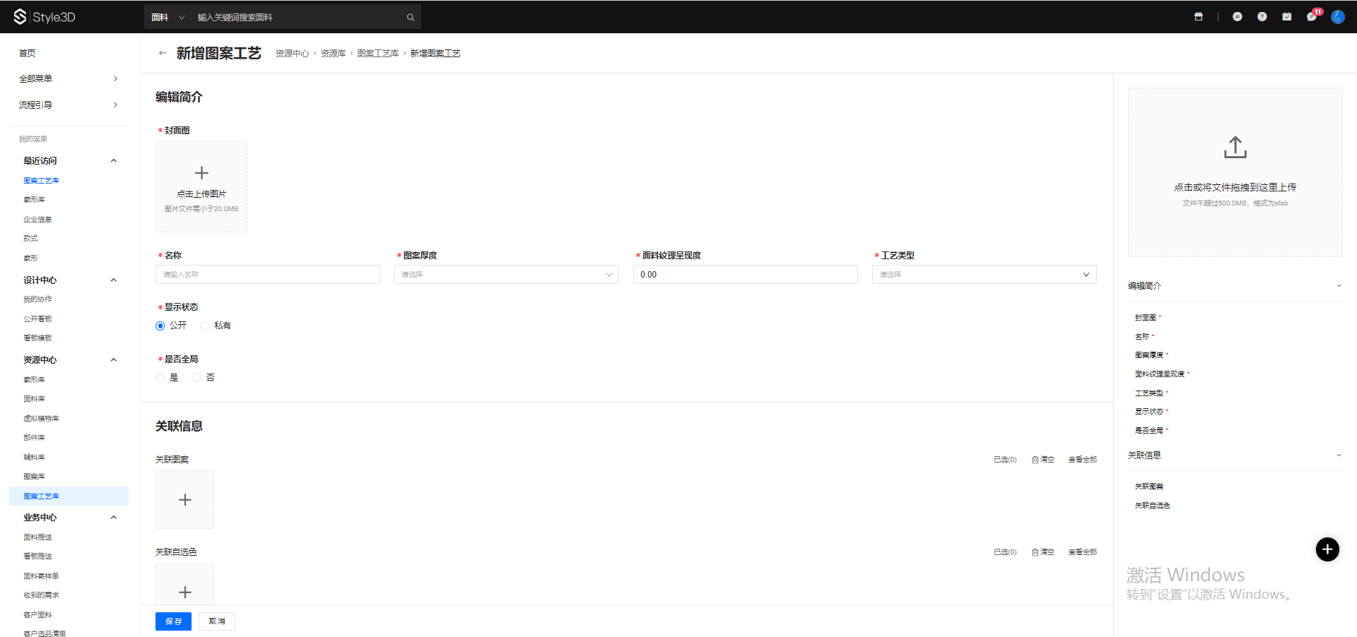 填入必选信息,并上传格式为SFAB格式的文件,即可上传新的图案工艺