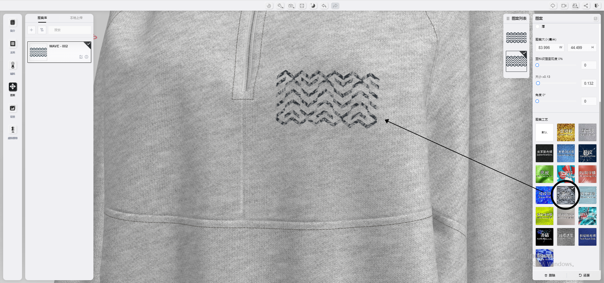 图案工艺不能单独使用,需要关联到图案上,以给到图案不同的展示效果