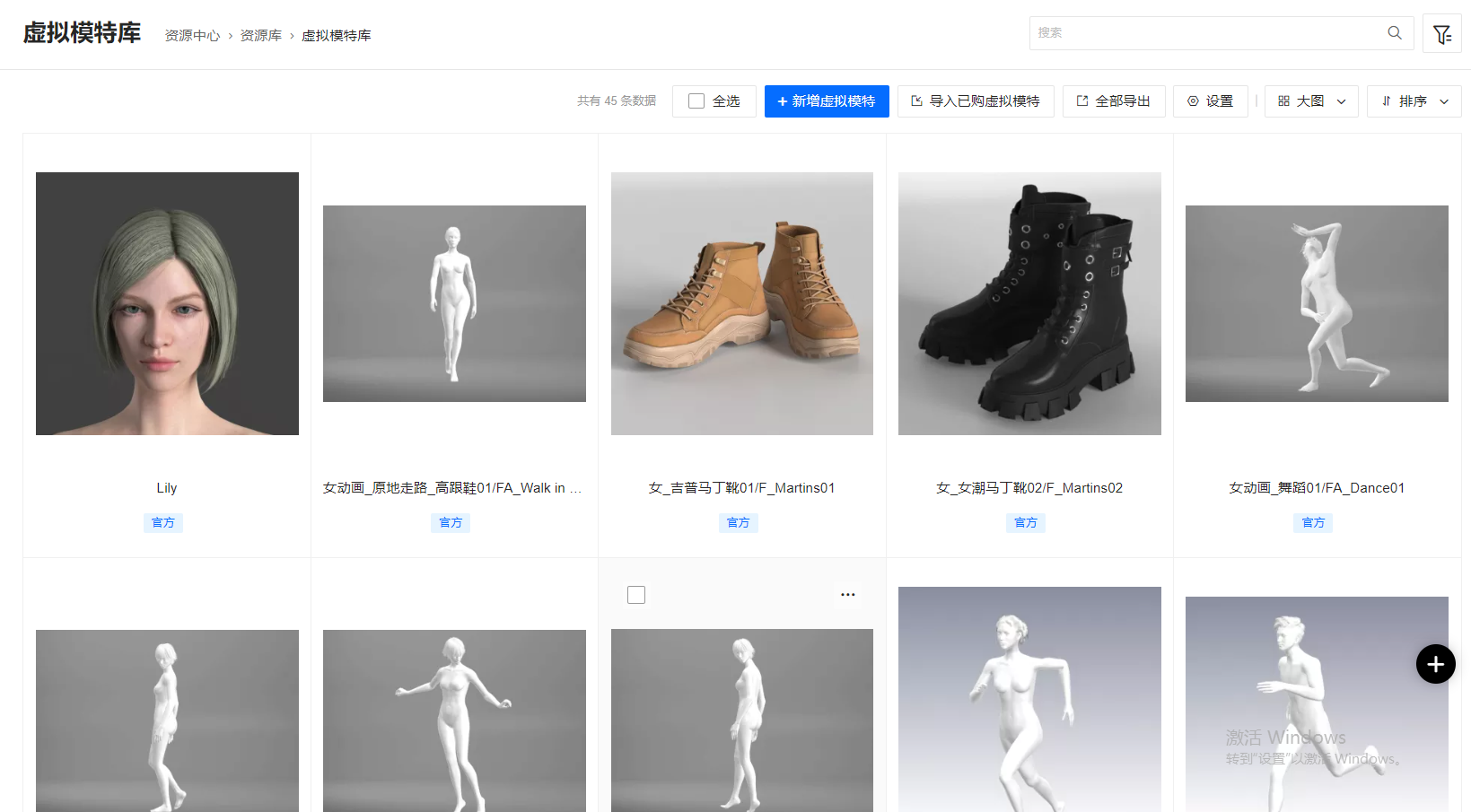 Cloud新增模特/配套资源:可直接新增/导入官方市场资源