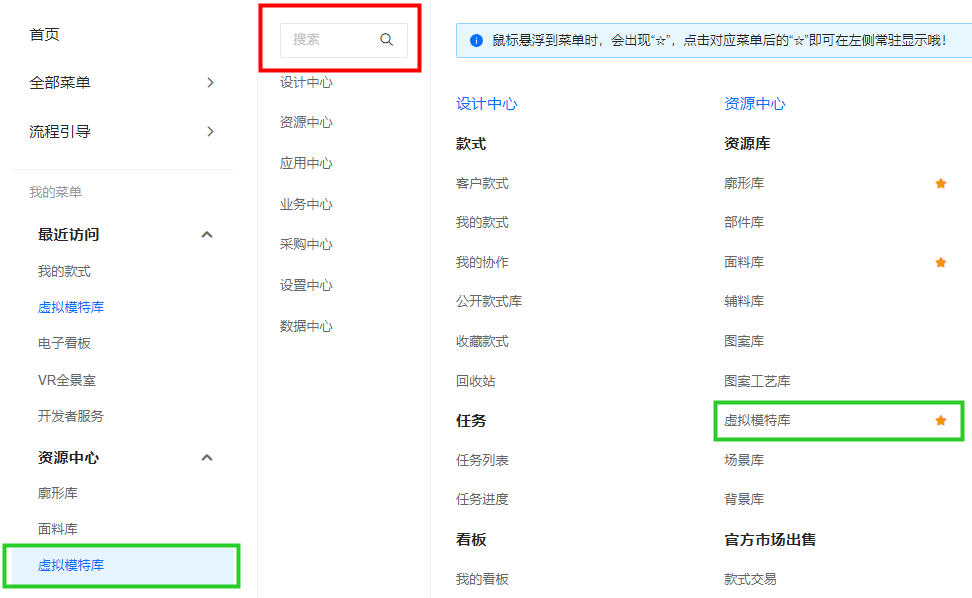 点击全部菜单,搜索虚拟模特库。也可收藏后,通过我的菜单进入