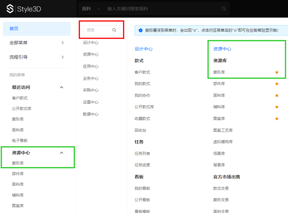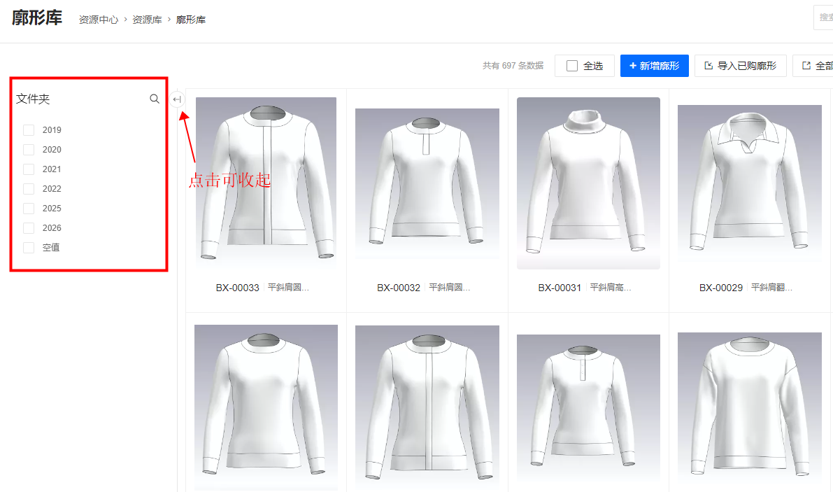 (1)新增廓形:可直接新增、从官方市场购买并导入或批量上传廓形